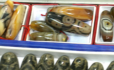 そのほかにも瑪瑙ではない天然石、人工石で出来た物など、質の低い天珠がたくさん出回っています。